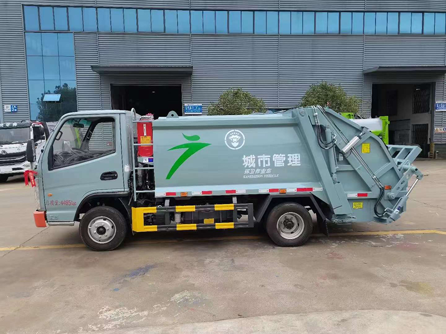 廂體有效容積4.5方,弧形箱體,采用專用鋼板制作,配套威森博樂多路閥,徐州全球通液壓油鋼管,皖液液壓油泵,填裝器舉升油缸帶液壓鎖裝置,采用PLC電控系統(tǒng),帶一鍵操作和手動操作兩種模式,電控操作盒3個,分別安裝在駕駛室內及車尾部各一只,方便操作,帶污水收集箱,尾部帶厚橡膠密封壓條。